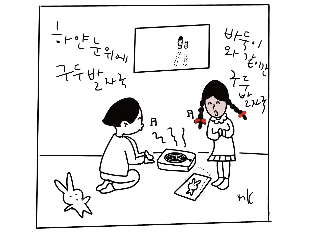 하지만 한편으로는 멋모르고 한창 뛰어 놀 어린아이에게는 동요가 더 어울리지 않을까 싶은 마음도 든다.