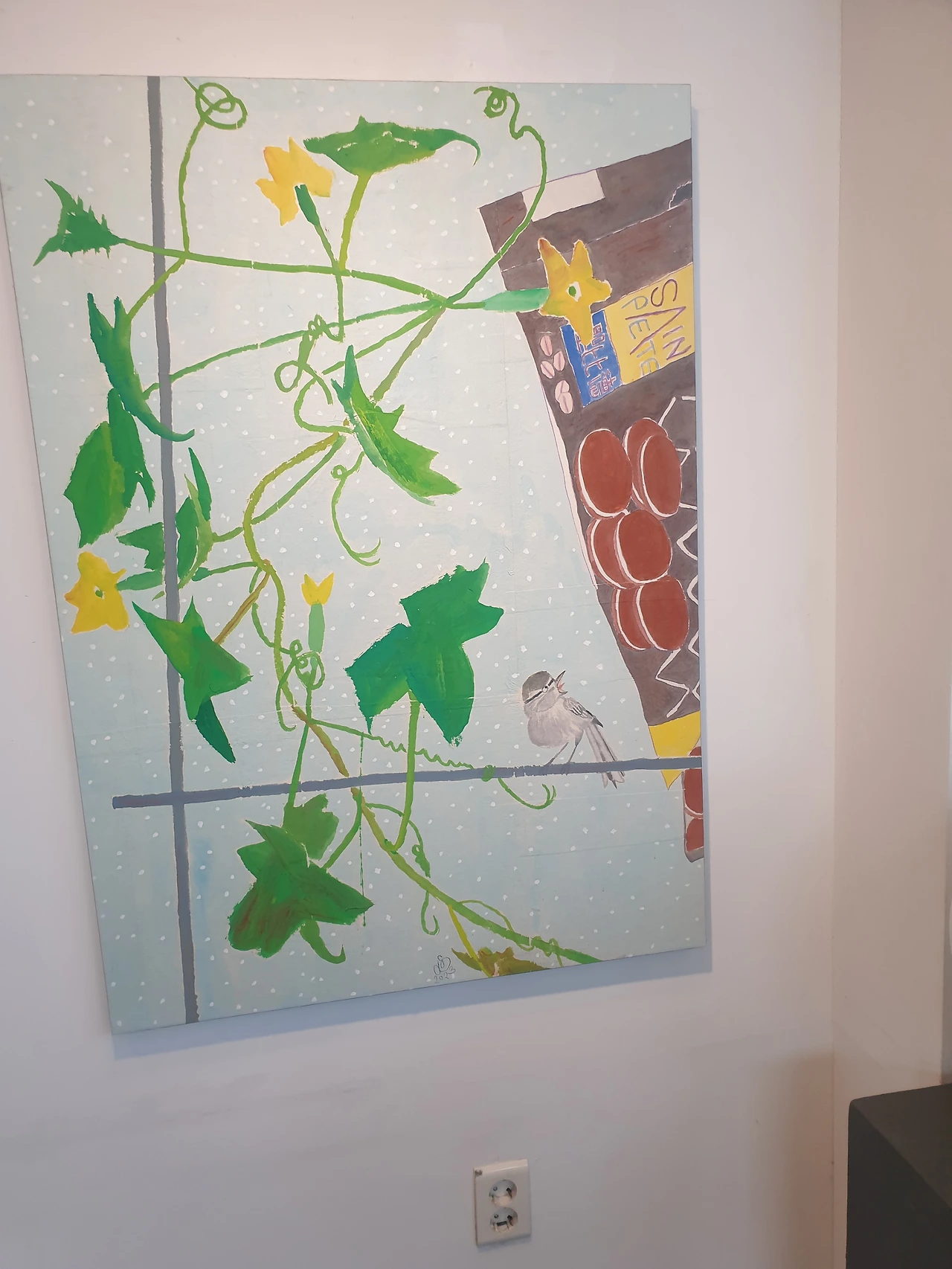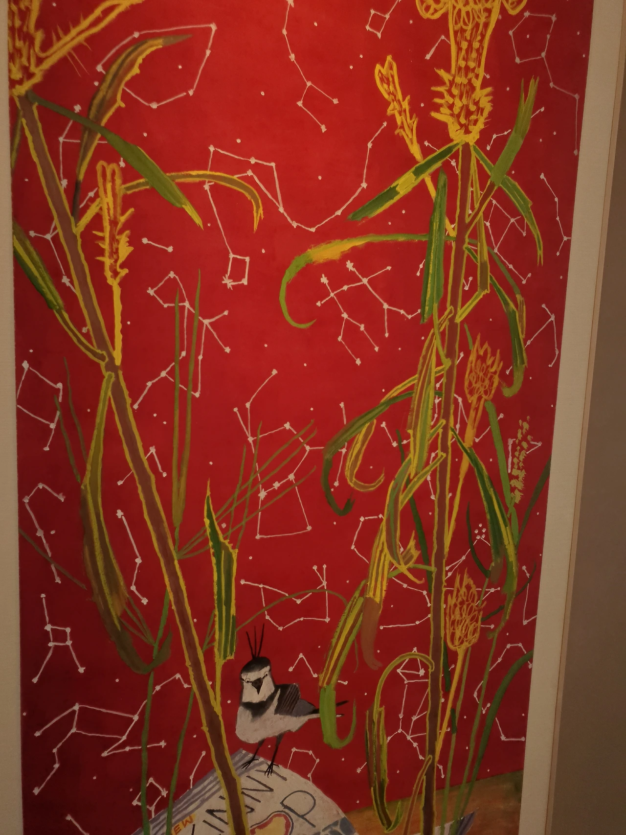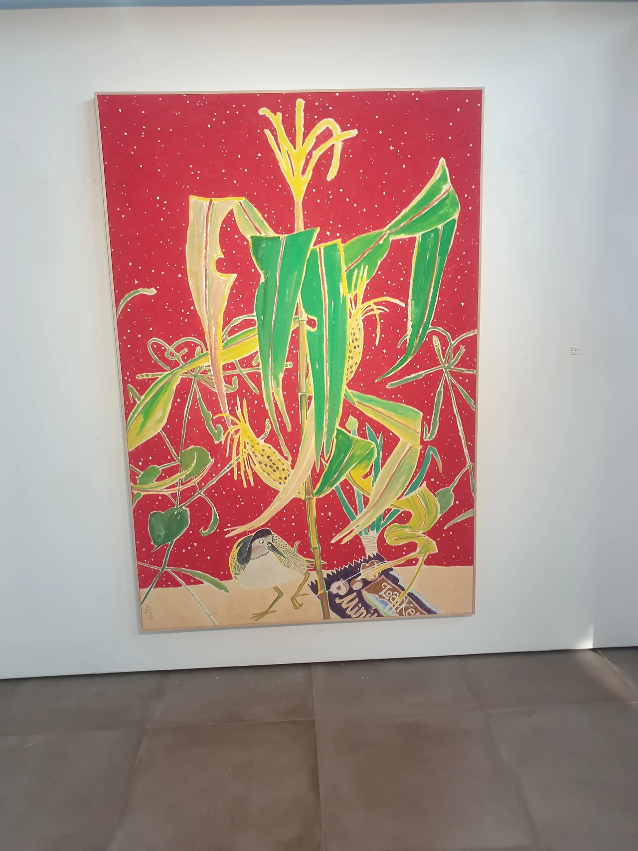 '낮별'이라는 작품이 특히 좋았다. 낮에도 별은 뜨지만 밝음에 가려서 보이지 않는 장면을 작가는 살아가는데 진짜 중요한 것이 무엇인지를 빈과자 봉지를 탐하는 새에 비교하여 장지에 분채로