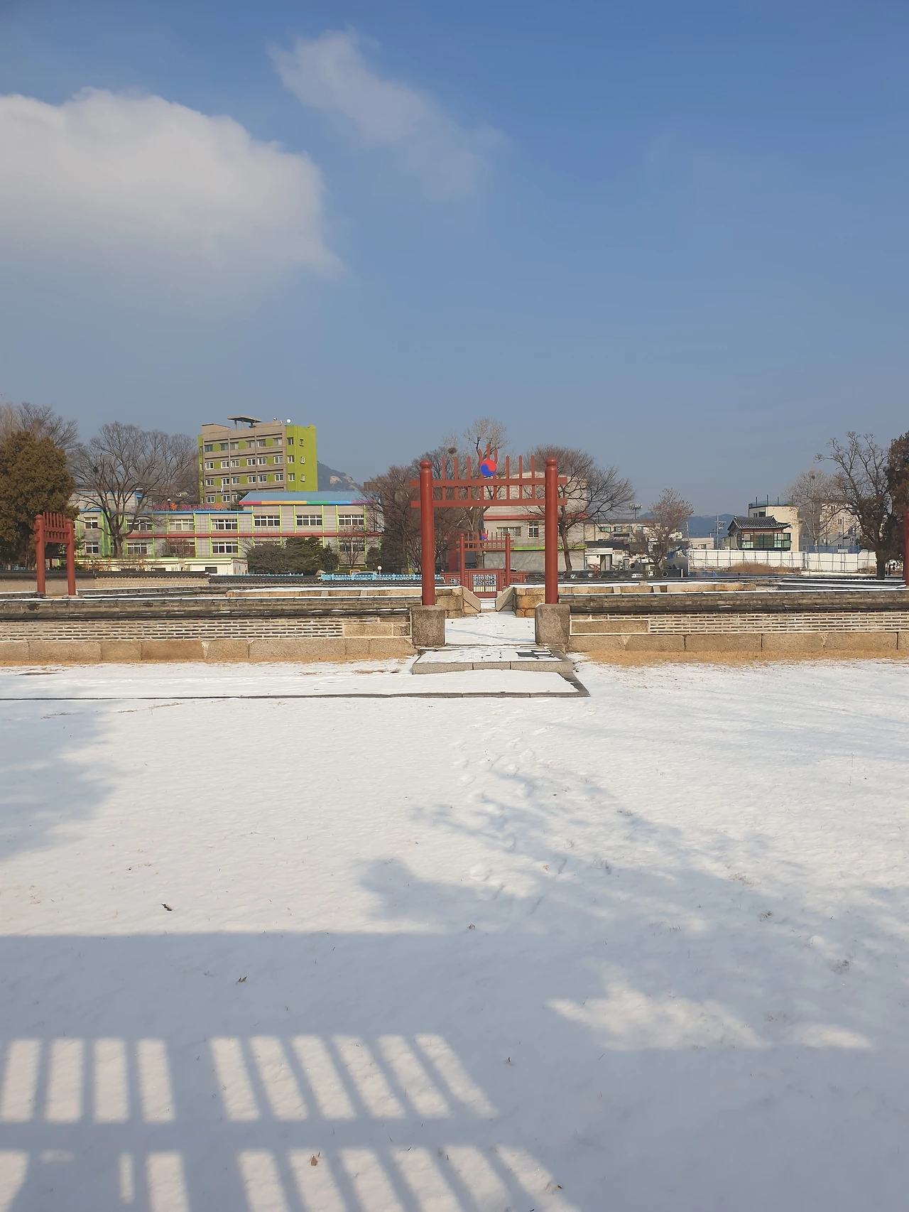 걸어가서 눈 내린 사직단을 보니 평화롭기 짝이 없다.