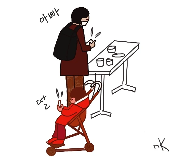 어느 브런치 식당에서 핸드폰에 몰두하는 두 부녀를 보았다. 아빠와 유모차에 앉은 어린 딸이 무언가에 몰두하고 서로에 대해서는 무관심하다.