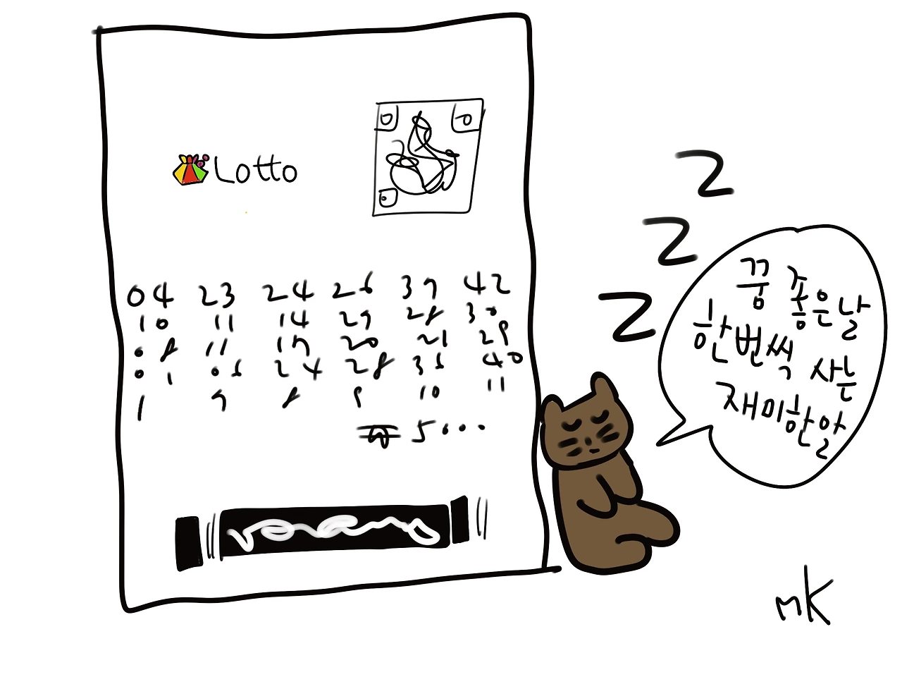 길을 걷다가 복권방이 눈에 들어와 꿈생각에 로또복권 한 장을 샀다. 하지만