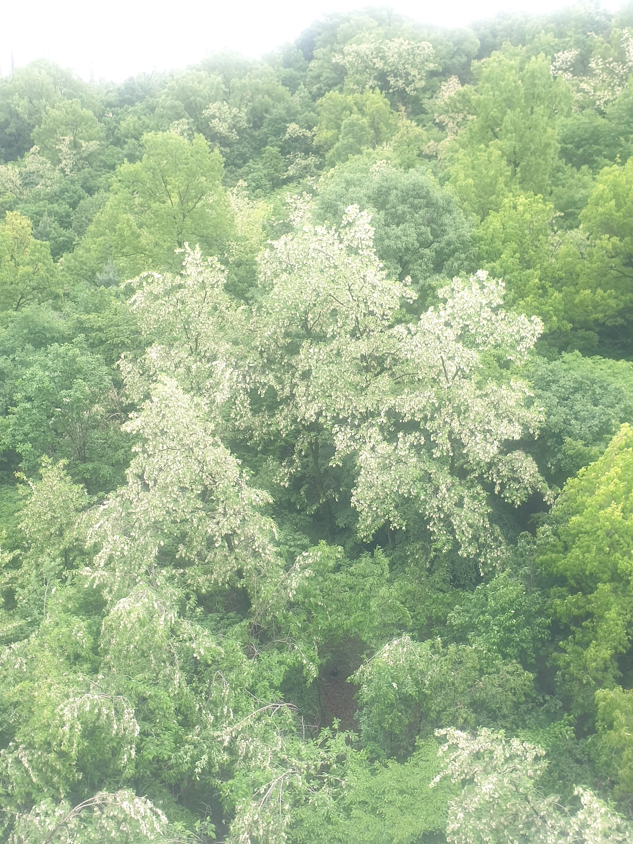오월 초에 비가 내리더니 아파트 앞 산 아카시아 꽃잎이 묵직하게 습기를 머물고 있고