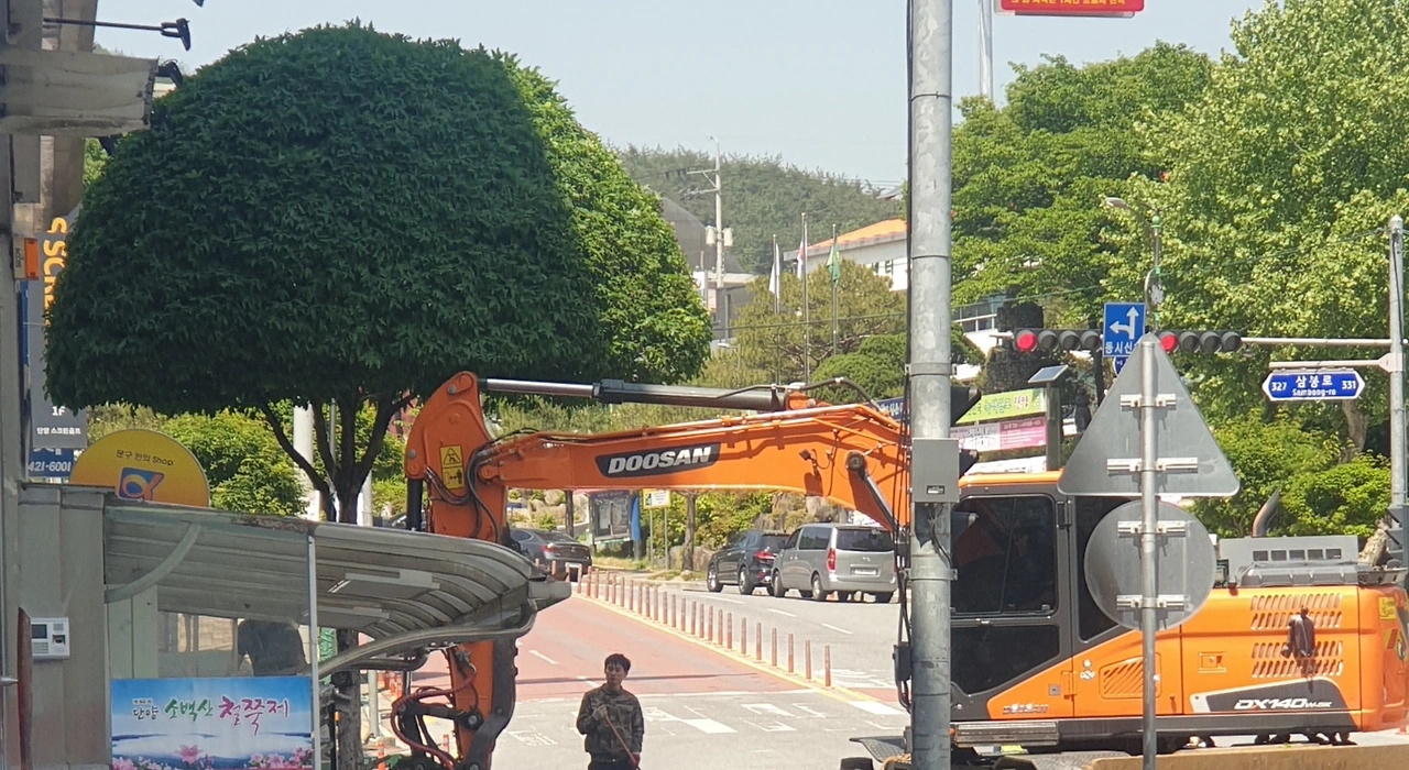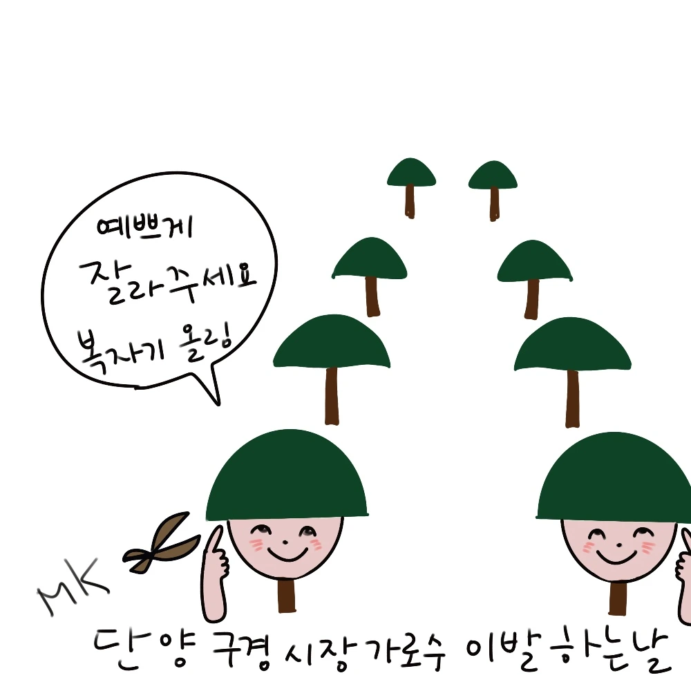 시장 주변에는 가로수를 정비 중이었다. 몽실이머리모양의 복자기 나무 가로수가 귀여웠다.