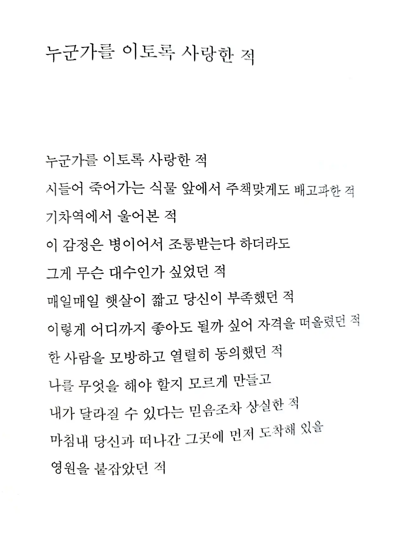 참 눈물 불행 공감 위로 상처 소독 천형 슬픔 아픔 선 미 문학 등이 떠오른다. 그래서 그런지 시 한 편을