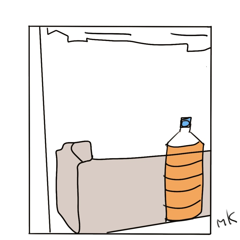 냉동고 한구석에 주홍빛의 페트병이 눈에 들어왔다.