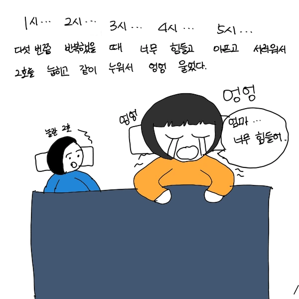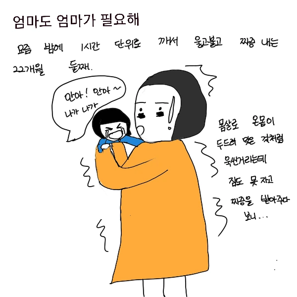 그래. 우리 아가, 너도 뭔가 힘들어서 엄마를 붙잡고 우는 거겠지. 엄마가 힘내 볼게.