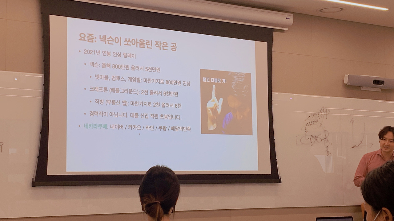 요즘: 개발자의 위상이 많이 높아짐. 넥슨이 시작한 연봉 상승에 이어 다른 게임사에서도 개발자 유치를 위해 그보다도 많은 연봉을 제시함. 학벌에 상관없고(의미 없음), 일만 잘하면 되면서 Diversity가 이뤄지고 있음. 그러나 연봉을 계속 올릴 수도 없는 것이 회사의 사정, 그래서 연봉에 이어 이제는 직원들의 삶의 질을 향상할 수 있는 조직문화/아이디어로 인재를 초빙/유지하려고 하고 있다.