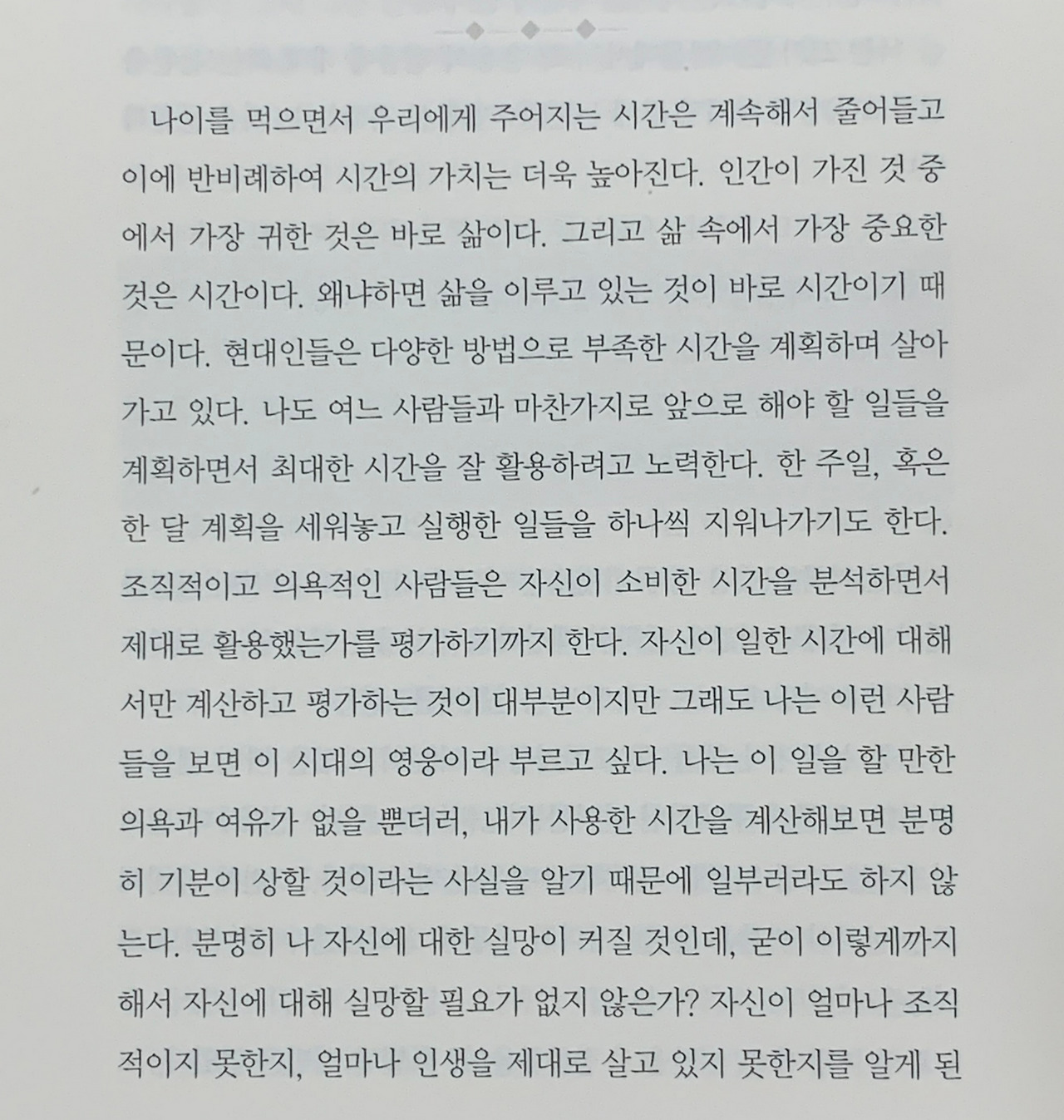 이제는 나 역시 시간의 중요성을 깨달아야 한다는 메시지가 계속해서 나를 둘러싸고 있는 것 같다. 우연일까, 아니면 나만의 성장 과정 속에서 자연스레 맞닥뜨린 화두일까?