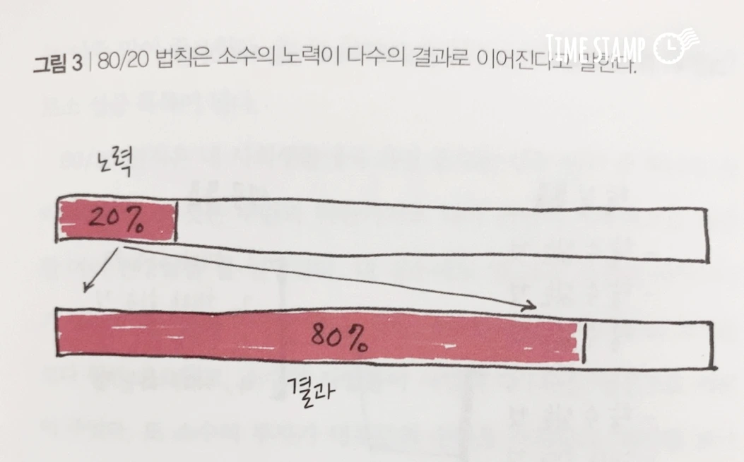 (상위 20%가 전체 생산의 80%를 해낸다는 법칙이다.) 소수의 원인, 입력 혹은 노력이 보통 다수의 결과, 출력 혹은 보상으로 이어진다 (리처드코치의 책) 즉, 몇몇 소수의 원인이 대부분의 결과를 만든다.