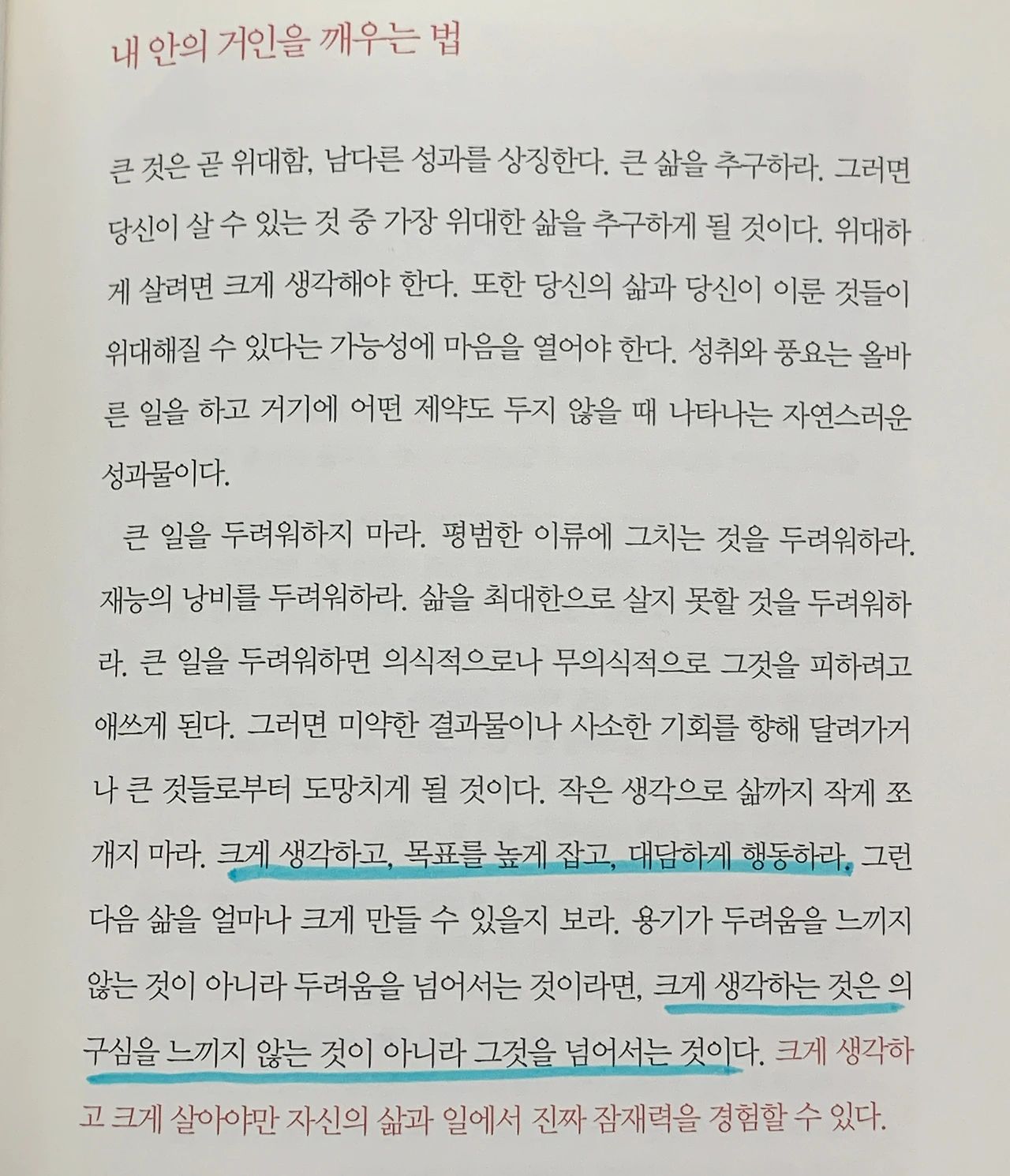 크게 생각하고 크게 살아야만 자신의 삶과 일에서 진짜 잠재력을 경험할 수 있다.