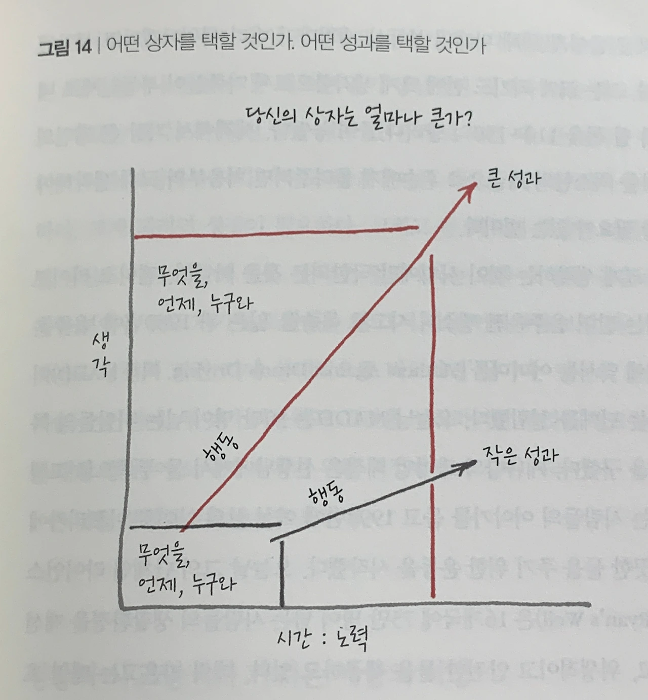 모두에게 주어진 시간은 같고, 열심히 일하는 데도 한계가 있다. 업무 시간 동안 무엇을 하느냐가 성과를 결정짓는다. 그리고 무엇을 하느냐는 생각에 따라 정해진다. 우리가 얼마나 크게 생각하느냐는 얼마나 높은 곳까지 이를 것 인가를 결정짓는 발판이 된다.