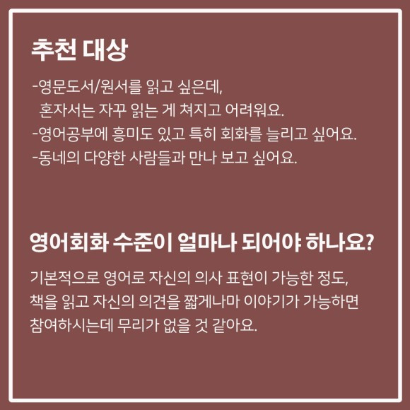책 읽는 것이 목적이라면 굳이 영어 독서 모임에 올 필요가 없는 것 같다.