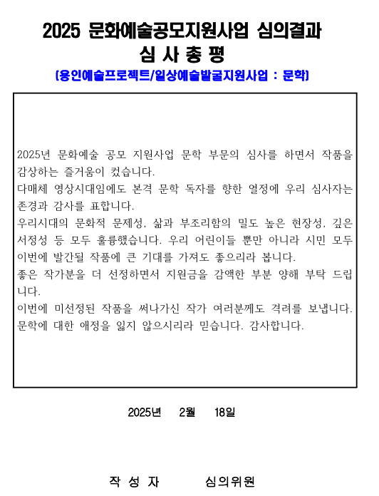 이럴 거면 동호회 문학지원사업으로 바꿔서 진행하는 게 맞을 것 같다.