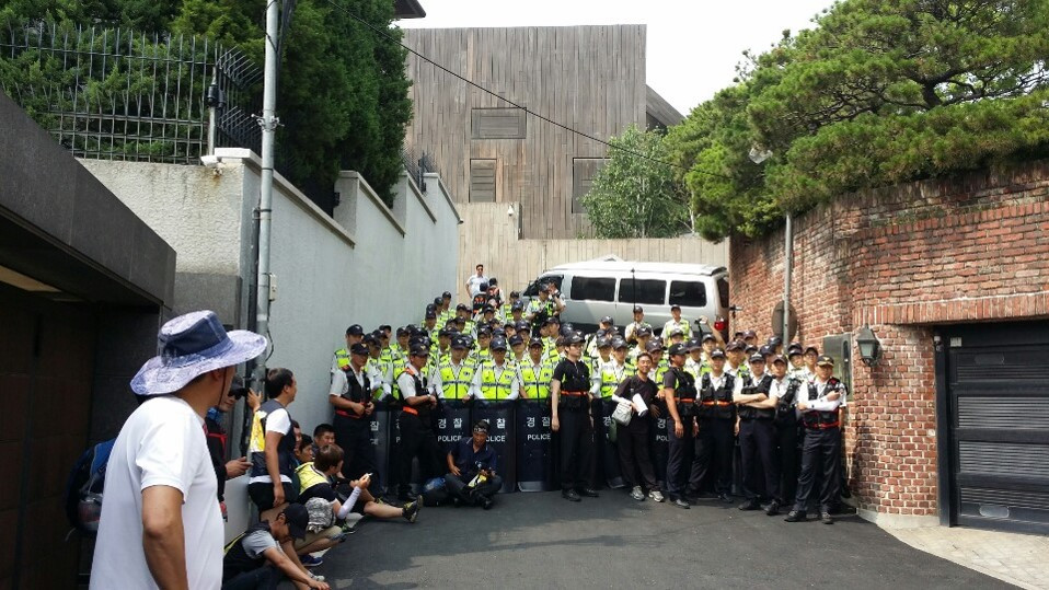 노동자들은 이건희 회장과 그의 아들 이재용 부회장에게 삼성전자서비스 노동자 염호석의 죽음에 대한 책임이 있다고 생각했다. 실제 원청이 관리자로서의 역할도 했고, 노조 죽이기도 했었기 때문이다. 노동자들은 시도 때도 없이 이건희 자택 앞을 찾았다. 주택가 시위는 법적으로 허용되지 않았기 때문에 그저 무작정 방문했다.