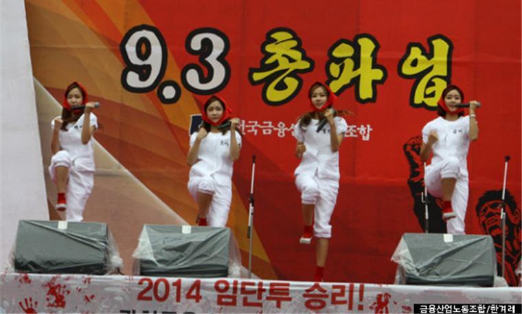 놀라운 풍경이다. 한국노총 산하 금융산업노동조합은 지난 9월 3일에 열린 임단투 승리 결의대회에서 당시 인기를 얻고 있던 아이돌그룹 크레용팝을 섭외했다. 이런 양상은 단지 민주노총 사업장이 아니기 때문에 드러난 것은 아니다. 민주노총이라고 다를까? 이렇게 노골적이지 않을뿐, 다르지 않을 수 있다. 노동자문화가 사라지고 있고, 또 그것에 대한 총체적인 이해 자체가 노조 활동가 안에서도 줄어들고 있기 때문이다.