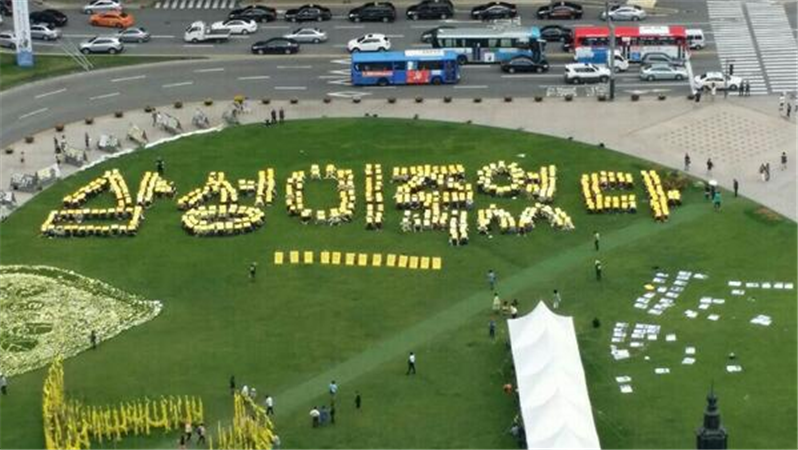 [사례14] 시청광장에서 “삼성이 죽였다” 및 ‘노란리본’ 만들기 518명의 퍼포먼스