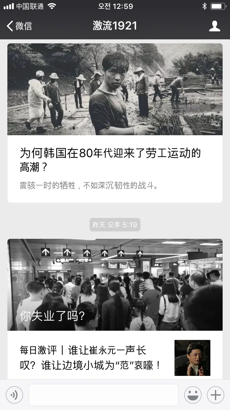 물론 중국은 사회주의보다는 자본주의 사회에 가깝다. 하지만 좌파들 역시 여전히 곳곳에 존재하고 자기 목소리를 내며, 곳곳에서 다양한 실천을 하고 있다. 이에 대해 인식하고 일종의 국제연대를 위한 지도를 그리고 교통하는 것은 충분히 의미있는 일이다. 아래 글을 통해 생각해 볼 점은 이들 신/구 좌파들이 80년대 한국 노동운동을 지속적으로 언급하고 소개함으로써 하고자 하는 자신의 이야기가 무엇인가이다. 눈치 빠른 사람들은 금세 알아차릴 수 있을 것이다. 아래 글의 목적의식적 입장은 결코 최근 젊은 활동가가 늘고 있는 것, 그리고 그들 중 일부가 신노동자(농민공)와의 연대를 시도하는 것과 무관하지 않을 것이라 생각한다. 편집인의 허락을 얻어 브런치에 올린다.