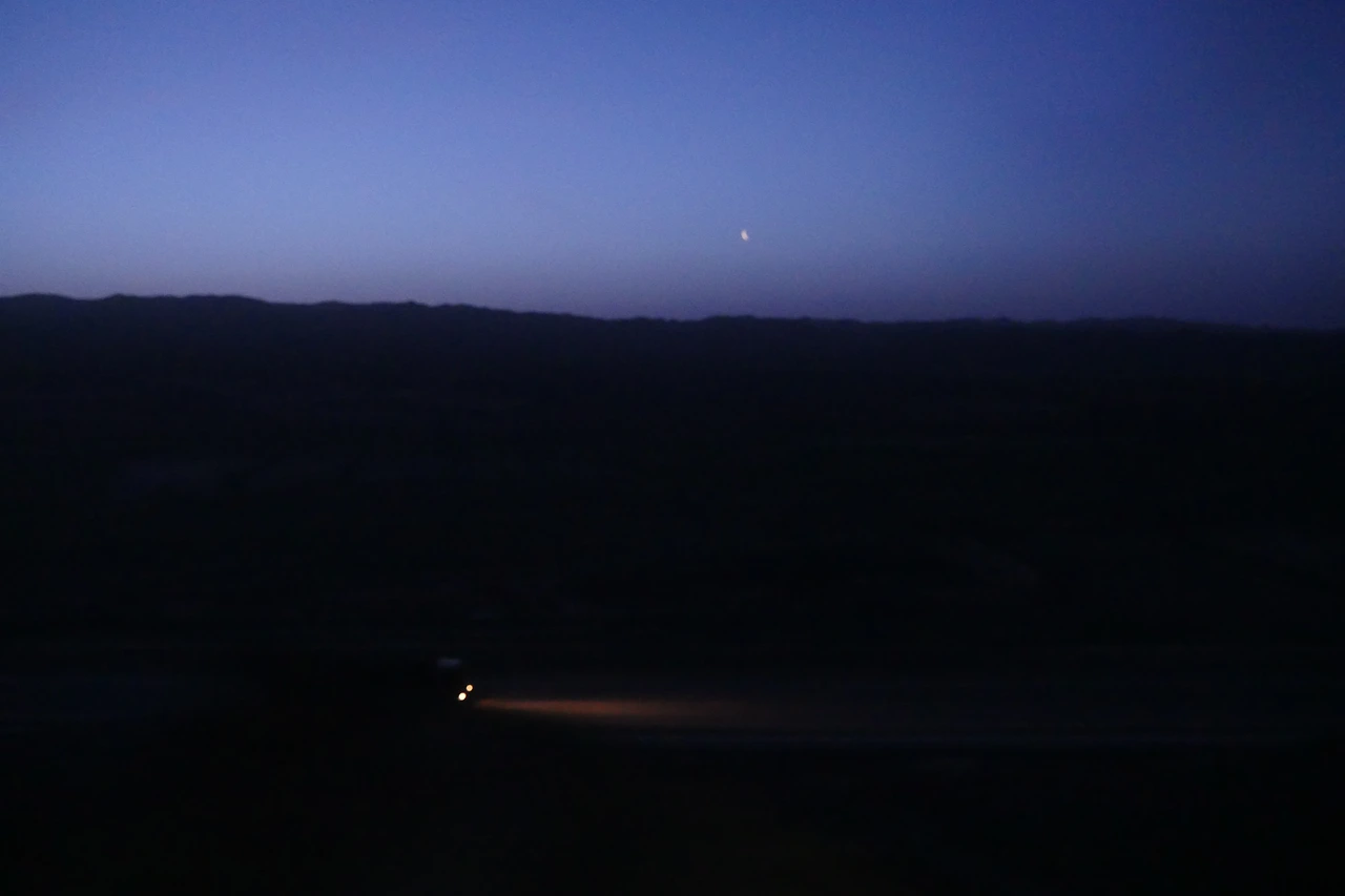 2018년 5월 13일 새벽 5시 즈음. 샨시성(陕西省) 서쪽 사막 어디쯤을 달리고 있었을 때였다. 모든 칸에는 그 칸을 관리하는 승무원의 방이 있는데, 쭈그려 앉아 자는 모습이 너무 안쓰러웠다. 그들은 이렇게 1년 내내 장시간 기차를 타면서 승객들을 안내하고, 열차 안을 청소하고 관리하는 일을 한다. 너무 이른 시간이라 모두들 자고 있었고, 나는 일찍 깨어나 창밖을 내다봤다. 그때 본 풍경을 잊을 수가 없다. 해는 아직 떠오르지 않아 새벽녘의 어스름이 깔려있었고, 반경 10km 안팎으론 아무것도 없는 벌판을 달리는 기차 옆 도로엔 차 한 대가 보였다. 이 새벽에 어디를 가는 걸까. 이런 들판을 자동차 한 대로 달리는 건 얼마나 심심한 일일까.