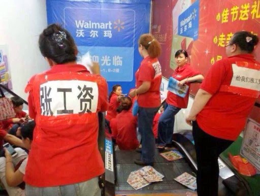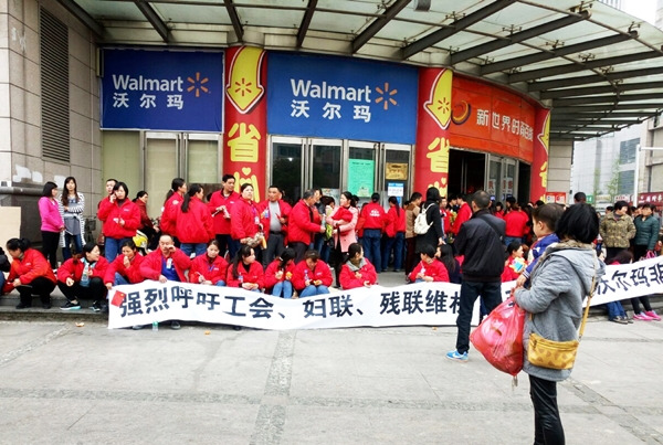 한국 대형마트 유통시장은 국내 기업들이 장악했지만, 중국엔 월마트나 까르푸 등 외자 대형마트가 있다. 워얼마(沃尔玛), 짜러푸(家乐福)라고 부른다. 2014년에 있었던 월마트 중국 매장 노동자들의 투쟁은 중국 노동운동이 여성 사업장, 유통서비스업으로 확장하고 있음을 보여준다. 2016년 봄 월마트 노동자들은 온라인을 통해 ‘월마트 노동자 네트워크’를 조직했다. 몇 주 새 1만여 명이 모였다. 2년 새 조직력이 100배로 늘었고, 한 기업 노동자들의 전국적 네트워크는 전례 없는 것이었다. 월마트 노동자들은 사측이 유연하게 노동시간을 분배하고, 연장근무에도 수당을 지급하지 않을 수 있는 노동시간제를 도입하려 하자, 7월 현재까지 전국 곳곳에서 포괄노동시간제 철회, 식대 지급, 기존 기업공회 대표 사퇴와 지도부의 민주적 선출을 요구하며 투쟁을 이어갔다. 이 네트워크는 공식적인 '공회'에 소속되진 않지만, 이 틀 밖에서 노동자들이 행동이 가능하다는 걸 보여준 하나의 사례였다. 이 투쟁에서 노동자들은 사측의 일방적인 폐업 및 해고, 정부의 탄압에도 불구하고 단결해 싸웠고, 완전히 승리하진 못했지만 이후 조직력 확대를 위한 토대를 만들었다.