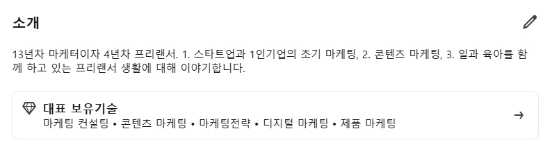 먼저 오늘부터는 디스플레이 카테고리의 회사에 B2B 콘텐츠 마케팅을 위해 파트타임으로 일하게 되어, 아마도 링크드인이나 리멤버에서의 프로필도 대폭 바꾸어야 되지 않나 싶다. 그러니까 프리랜서 타이틀은 이제 N잡러로 바뀌게 되는 것이다.