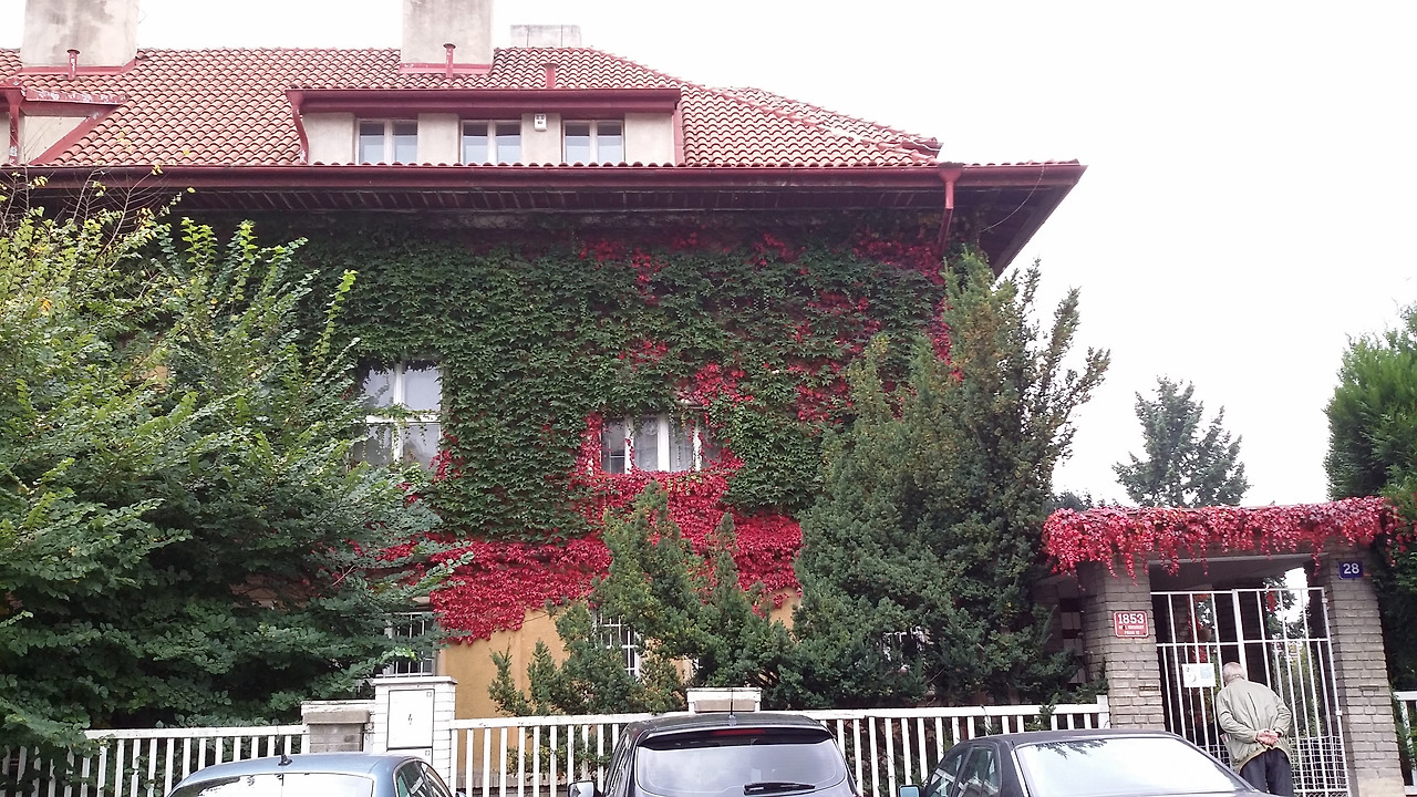 마침 가을이라 단풍이 든 담쟁이로 덮인 3층 차페크의 집은 방문자의 가슴을 설레게 했으나, 아름다운 정원이 있는 것으로 알려진 그의 집 건물 안으로 들어가지는 못했다. 내부 수리 중이라는 말을 전해 들었지만, 실은 현재의 집주인이 이 집을 팔 요량으로 내놓아 체코 문화부와 협상 중이라, 집 내부를 쉽사리 공개하지 않는 것 같았다. 그래 그냥 헛물을 켜고 발길을 돌려야 했다.