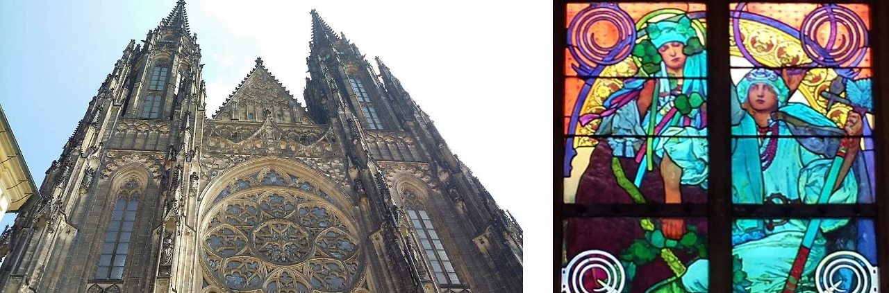 단순히 짐작만은 아닌 게, 우리 관광객들의 필수 여행 코스인 프라하 궁성 안 비투스 성당의 스테인드글라스 중엔 무하의 작품이 있다. 또 역시 중요한 관광코스 중 하나로 올드 타운 화약탑 옆에 위치한 장식적이며 화려한 시민회관 건물이 있는데, 이 극장은 무하가 추구했던 소위 아르누보 양식의 건물이다.