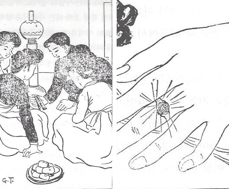 윷을 던지느라 손을 뻗은 김중배의 무명지에 낀 금강석(다이아)의 광채가 심순애를 비롯한 여인들의 눈길을 끈다. 김중배의 유혹에 넘어가는 심순애, 사랑의 배신을 당하고 고리대금업에 뛰어들어 돈을 모아 애인에게 복수하려는 이수일의 삼각구도가 설정된다.