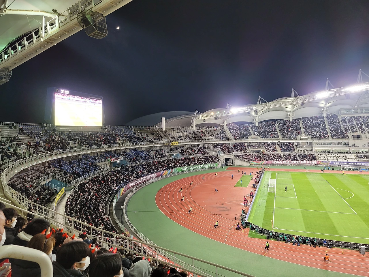 코로나팬데믹 이후 거의 2년 동안 축구 A매치 관중 입장이 아예 금지되거나 일부만 개방되었는데, 모처럼 100% 좌석이 개방되어 큰 애와 함께 고양종합운동장으로 직관을 갔다.