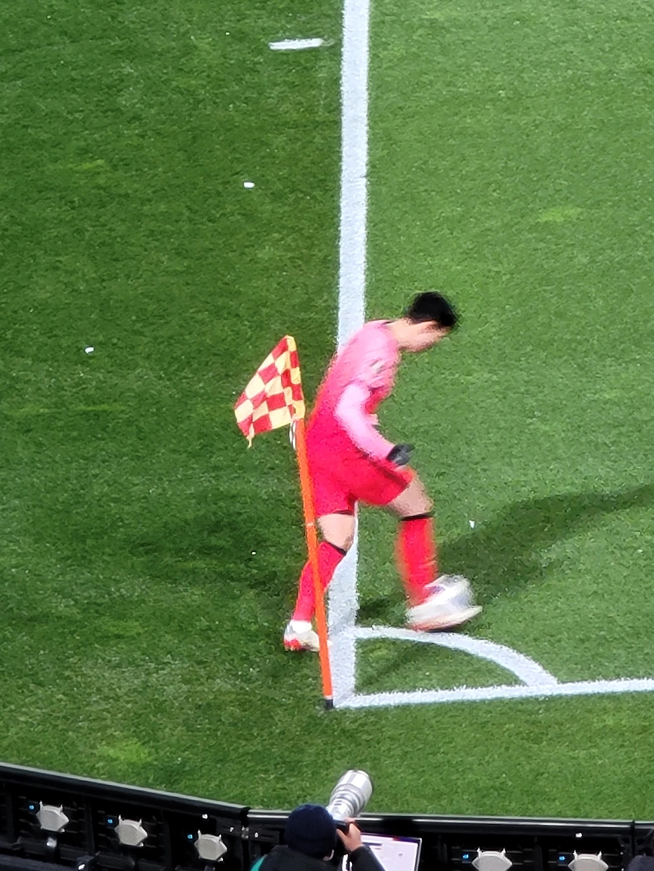 스마트폰 줌으로 최대한 당겨 찍어봤다. 대한민국 캡틴 손흥민의 모습도 보인다.