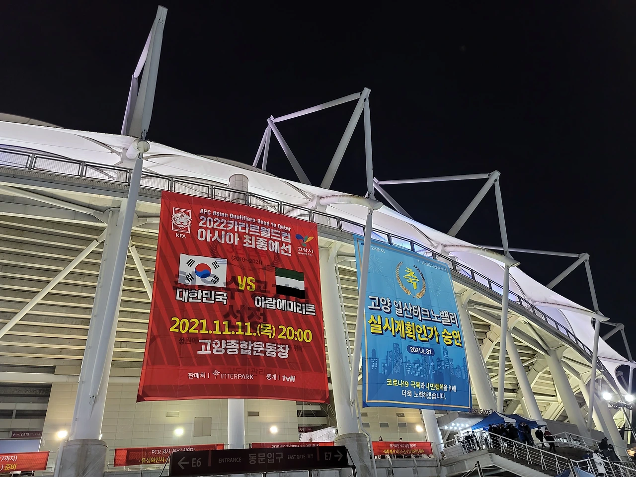 지난 주 목요일 11월 11일에 2022 카타르월드컵 최종예선 대한민국 축구 대표팀과 UAE와의 경기를 직관하러 고양종합운동장에 다녀왔다.