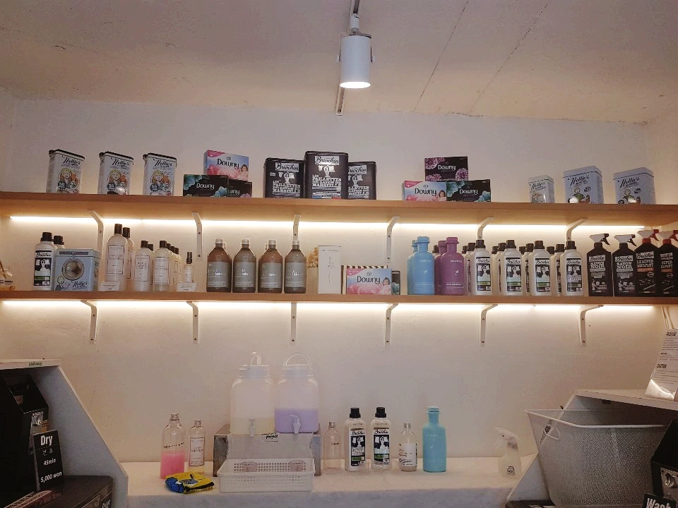 책을 읽다가 빨래가 다 되어서 이번에는 건조기에 던져 넣고 카페 내부를 슬쩍 구경했다. 카페 한 켠에는 세탁 세제뿐만 아니라 섬유향수와 같은 빨래 관련 아이템들이 진열되어 있었다. 어디 어디 유명한 곳과 콜라보도 많이 하는 것 같았고 단순한 빨래터가 아니라 여러 가지를 시도하고 있는 것 같아서 인상적이었다.