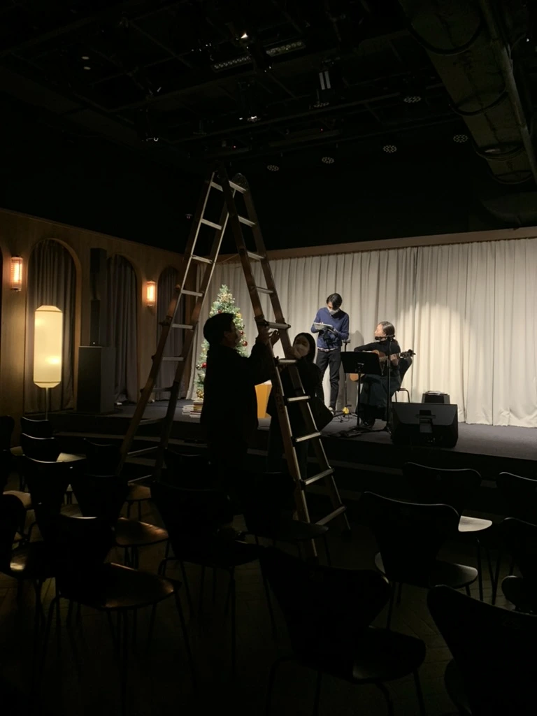 사실 지나치게 크리스마스 분위기가 나는 건 아닌지, 무대가 너무 복잡하고 조잡스러워 보일 진 않을지 걱정이 많이 됐었다. 눈으로는 예쁘지만 주제를 해치면 어떡하나 고민하기도 했는데, 남은 사진을 보니 작가님의 이야기를 해치지 않는 선에서 따뜻한 분위기를 낼 수 있었던 것 같다.