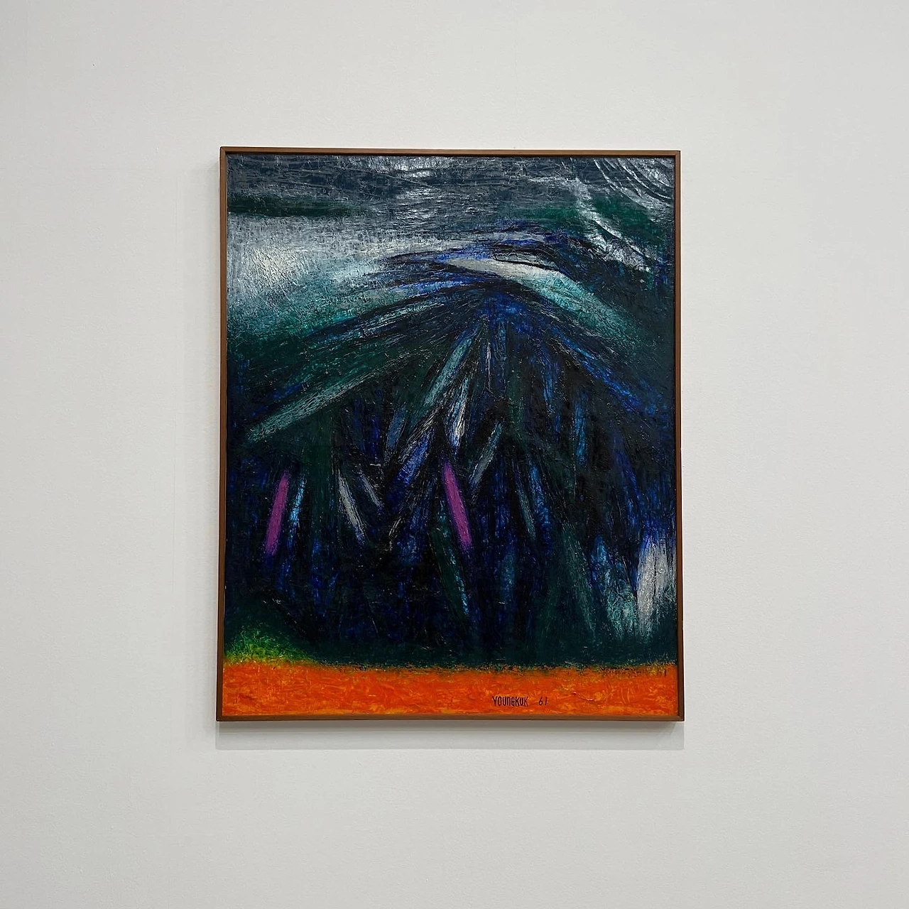 추상화인데다 색이 강렬하고 명상적인 느낌이 있어 몇 작품은 마크 로스코 작품이 생각나기도 했다. 어떤 사람들은 어떤 작품 앞에 서서 하염없이 그림을 쳐다봤다. 엊그제의 나는 차분하고 가만한 그림들이 마음에 들었다. 조금 더 오래 머물렀으면 나도 하염없이 서있었을 것이다.