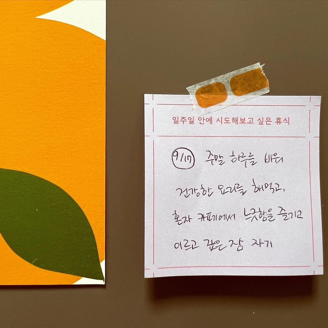 짬 내서 쉬는 대신 쉬는 시간을 먼저 두고 몸도 까먹지 말아야지. 다들 일상이 건강하게 돌아가고 있는지 한 번쯤 점검해볼 만하다. 벌써 9월 허리에 왔으니까. 몸살이 나지 않게 뜨거운 쌍화탕을 홀홀 마시며 휴식을 생각했다.