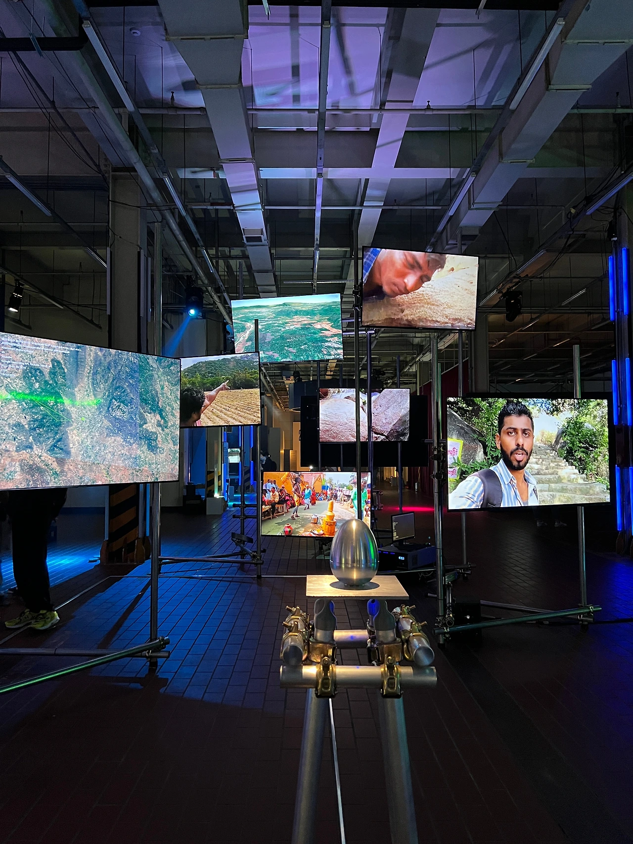 주변 온도, 습도, 풍향 등 정보를 취합, 소리로 변환하는 기계를 이용한 작업. 작가는 기계에 인격을 부여하고, 실시간 중계 화면을 통해 새로운 연결을 제안한다. 덜 장엄한 오르간 연주 같아서 쉬는 느낌이었음.