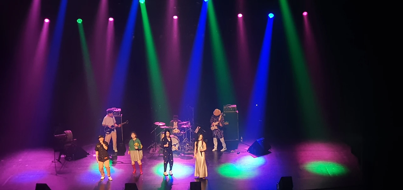 무대는 아주 단출했다. 드럼과 북, 베이스, 스피커가 서있는 풍경. 그리고 무대 양 옆의 작은 스크린을 통해 곡 제목이 표시되었다. 처음에는 악기와 소리꾼만 공연하다가, 중간부터는 앰비규어스 댄스 컴퍼니가 함께 무대를 채웠다. 웃기고 멋진 춤이 박자에 딱 맞게 떨어질 때 쾌감이 있었다.