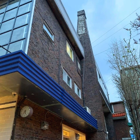 듀펠센터는 30년 된 목욕탕을 고쳐 만들었다고 한다. 목욕탕의 원래 모습은 짐작하기 어려웠다. 목욕탕 굴뚝이 없었더라면 평범한 옛날 빌라라고 생각했을 것이다. 굴뚝도 내가 진입했던 방향에서는 전혀 보이지 않아 숨바꼭질하는 마음으로 찾았다. 오픈 초기에는 기념으로 목욕탕 락커 키도 팔았는데, 내가 갔을 때에는 대야와 수건, 목욕의자 밖에 없었다.