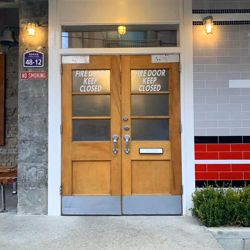 대부분 헛간에서 뜯어온 것 같았고, 디테일이 조금씩 달랐다. 외부 문뿐만 아니라 내부에 있는 문들도, 심지어 탈의실 문들도 전부 달랐다. 예전에 커피한약방 사장님의 강연에서 들어보니, 커피한약방에 있는 문, 창문, 테이블 같은 것들을 어디선가 공수해오셨다고 했다. 공간의 분위기에 맞는 것들, 기획자의 눈에 예뻐 보이는 것들을 지방에서, 해외에서 가져다가 공간에 맞게 꾸민다고 하셨다. 아마 이곳도 그렇지 않을까.