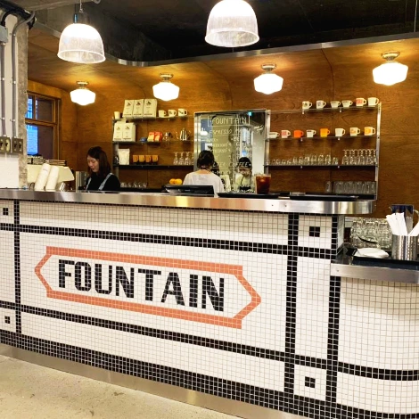 듀펠센터를 구경하고 다시 1층으로 돌아왔다. 로비 겸 카페 '파운틴'이 있다. 목욕탕 자리에 생긴 카페라서 그런지 의자 배치를 유심히 보면 목욕탕이 생각난다. 파운틴이라는 이름도 목욕탕에서 가져왔다고 하니 무리한 해석은 아닐 것 같다. 의자와 테이블의 구분이 별로 없어서 일행 별로 테트리스하듯 옹기종기 앉게 되었다. 마치 넓은 목욕탕에서 등을 맞대고 앉아 저마다 때를 밀거나 물을 끼얹는, 목욕하는 사람들처럼 보였다.