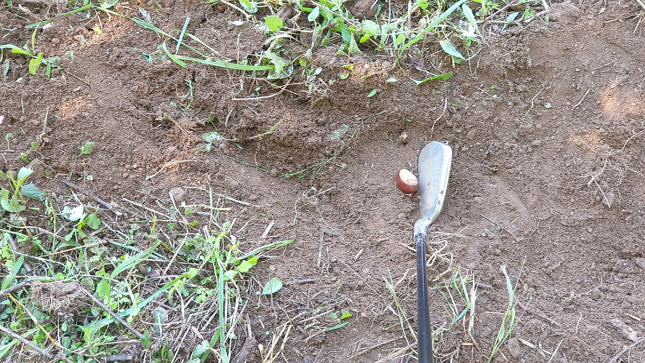 벼도 다 벴겠다, 아직 밭일이 많이 남았지만, 클럽도 생겼겠다, 이제 더 휘둘러야지, 생각하는데 드는 생각, 근데 뭘 치지? 빈 스윙만 해도 좋지만, 뭔가 날아가는 게 보여야지. 깡통을 치자니 좀 없어 보이고…. 그때 떠오른 것이 밤이다. 집 주변에 열 그루가 있는데, 유독 하나가 밤알이 작고 썩었다. 줍는 것 같지도 않고, 안 주울 수도 없어 고민했는데, 골프공으로 변신!