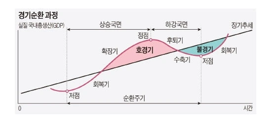 경기침체(Recession)란 한 국가의 경제활동이 전반적으로 둔화되는 시기를 말한다. 정확히는 GDP 성장률이 2분기 연속 마이너스를 기록할 때 경기침체로 정의한다.