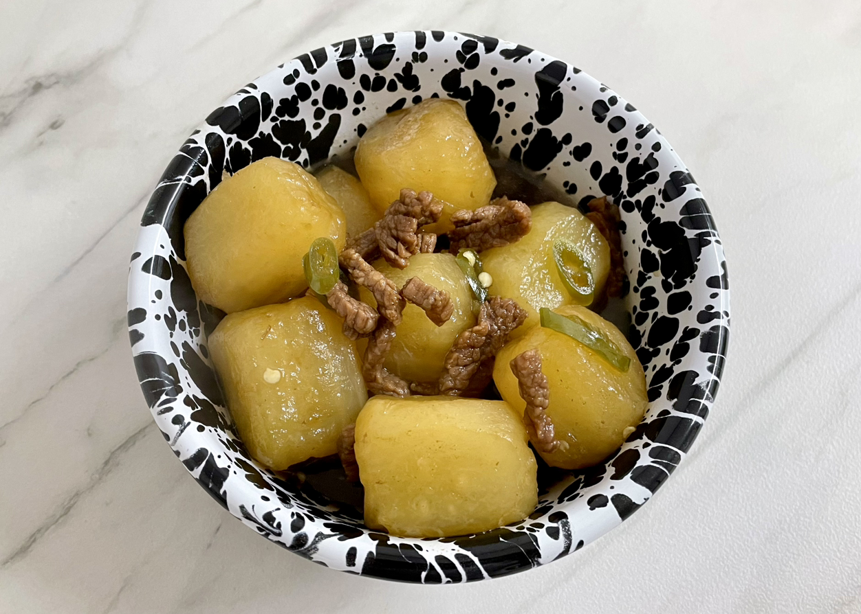 냄비에 소고기를 살짝 볶다가 잘라 낸 무를 넣고 무가 잠길만큼의 물을 부은 뒤 간장, 설탕, 맛술, 청양고추 하나, 다시마 한 조각을 넣고 조렸다. 처음에는 강한 불에서 끓이다가 끓어오르고 나면 불을 약하게 줄여 30-40분간 뭉근하게 끓이는데, 그냥 물을 넣고 조리해도 무에서 시원한 맛이 나와 맛있지만 가쓰오부시가 있다면 가쓰오부시 육수를 내서 만들면 더욱 풍부한 맛의 무조림이 완성된다.