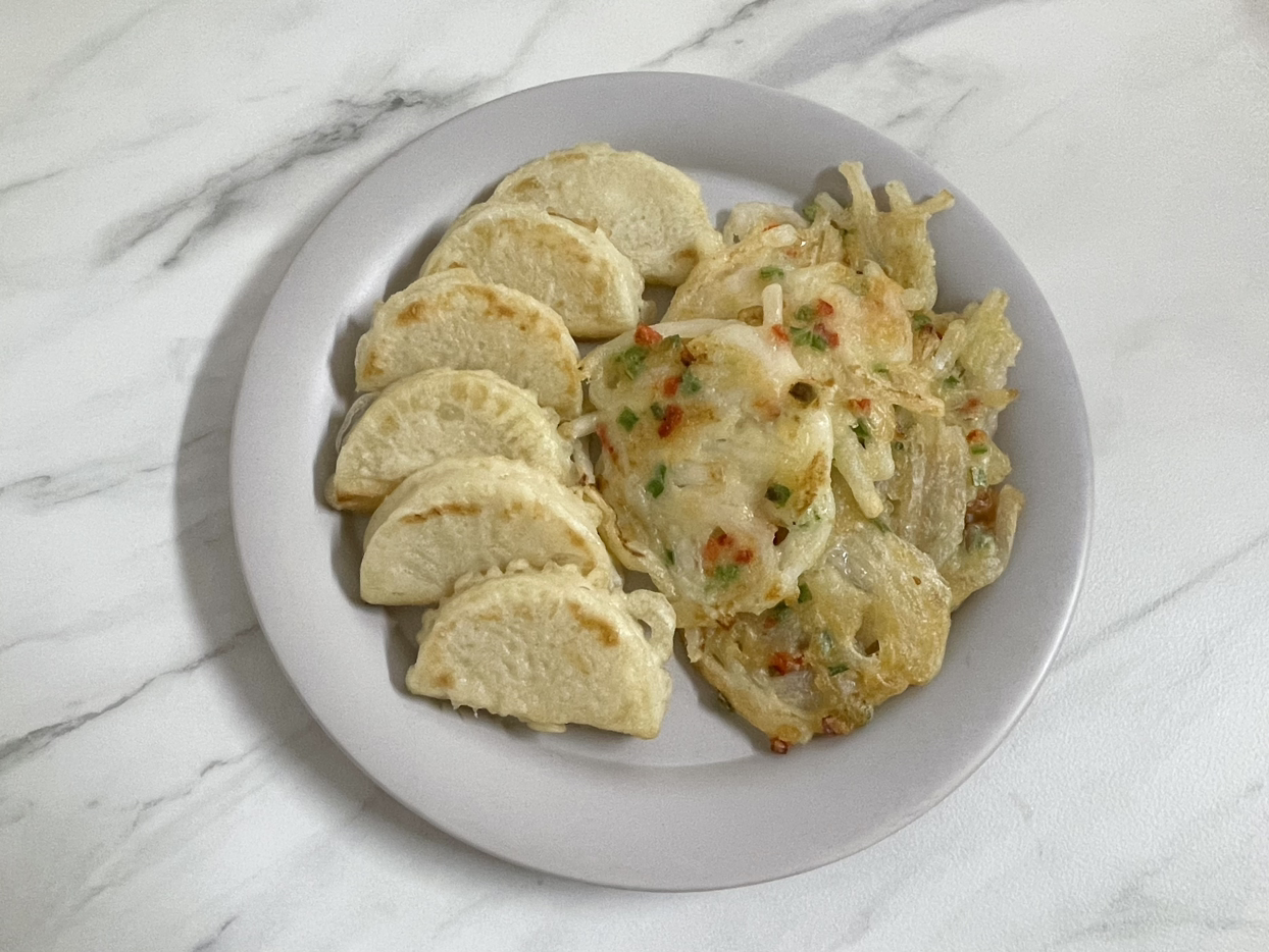 편스토랑에서 류수영 배우님이 소개한 방법의 무전도 한 번 만들어봤다. 무는 채 썬 다음 소금에 절였다. 소금에 절인 무는 꼬독꼬독한 식감을 내면서 수분이 빠지는데 무의 물기를 꽉 짜낸다. 물기를 짜 낸 무에 홍고추와 청양고추를 다져놓고 튀김가를 넣어 반죽을 했다. 무를 절이면서 수분이 나오기 때문에 튀김가루만 넣어줘도 전 반죽이 완성된다. 한 입 크기로 떼어 낸 전 반죽을 노릇노릇하게 구워내면 색다른 무전이 완성된다.