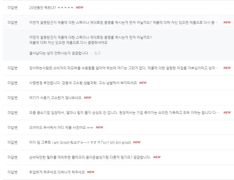 규모가 작은 중소기업이라 그런지 적어도 이런 일에서 경험이 별로 없어 보이기도 하고.. 네이버 스토어팜, 와디즈 댓글 등을 보면 사실 안타까울 정도다.