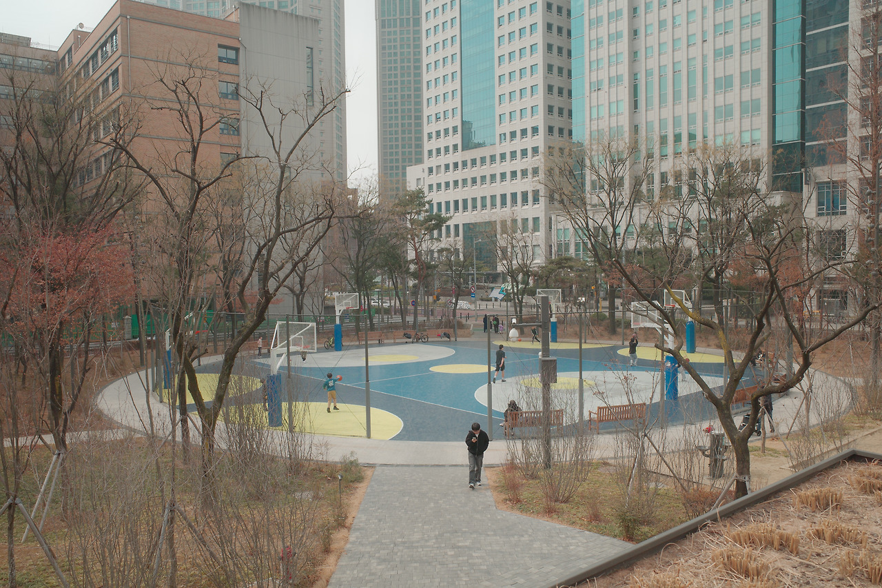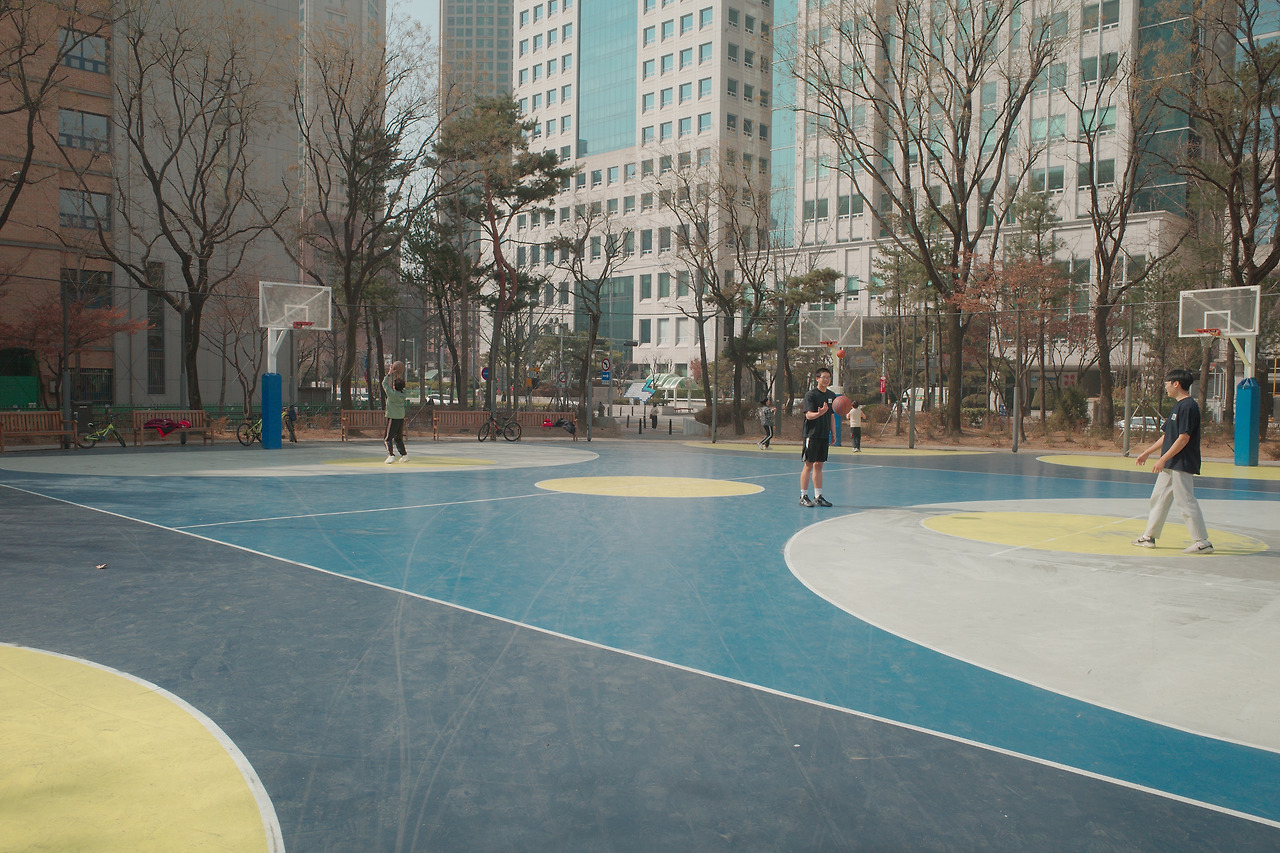 이용자를 배려한 요소가 켜켜이 쌓이다 보면 어느 순간 공간이 인격을 가지고 있는 듯한 기분이 들 때가 있다. 오목공원을 걸으며 느낀 것은 단지 아름다움의 수준을 넘어, 도시생활자의 삶의 리듬과 거리에 대한 배려심, 환대감이었다. 오목공원은 우리 일상의 균형감각을 되돌아보게 한다. 회랑의 그림자 아래서 바둑을 두던 어르신, 비를 피해 회랑을 향하는 아이 엄마, 농구 골대 아래 모여 있던 학생들. 모두가 자신만의 속도와 거리감으로 공간을 살아낸다. 그렇게 오목공원은 공원의 이름을 빌려, 도시의 인격을 닮아가고 있었다.