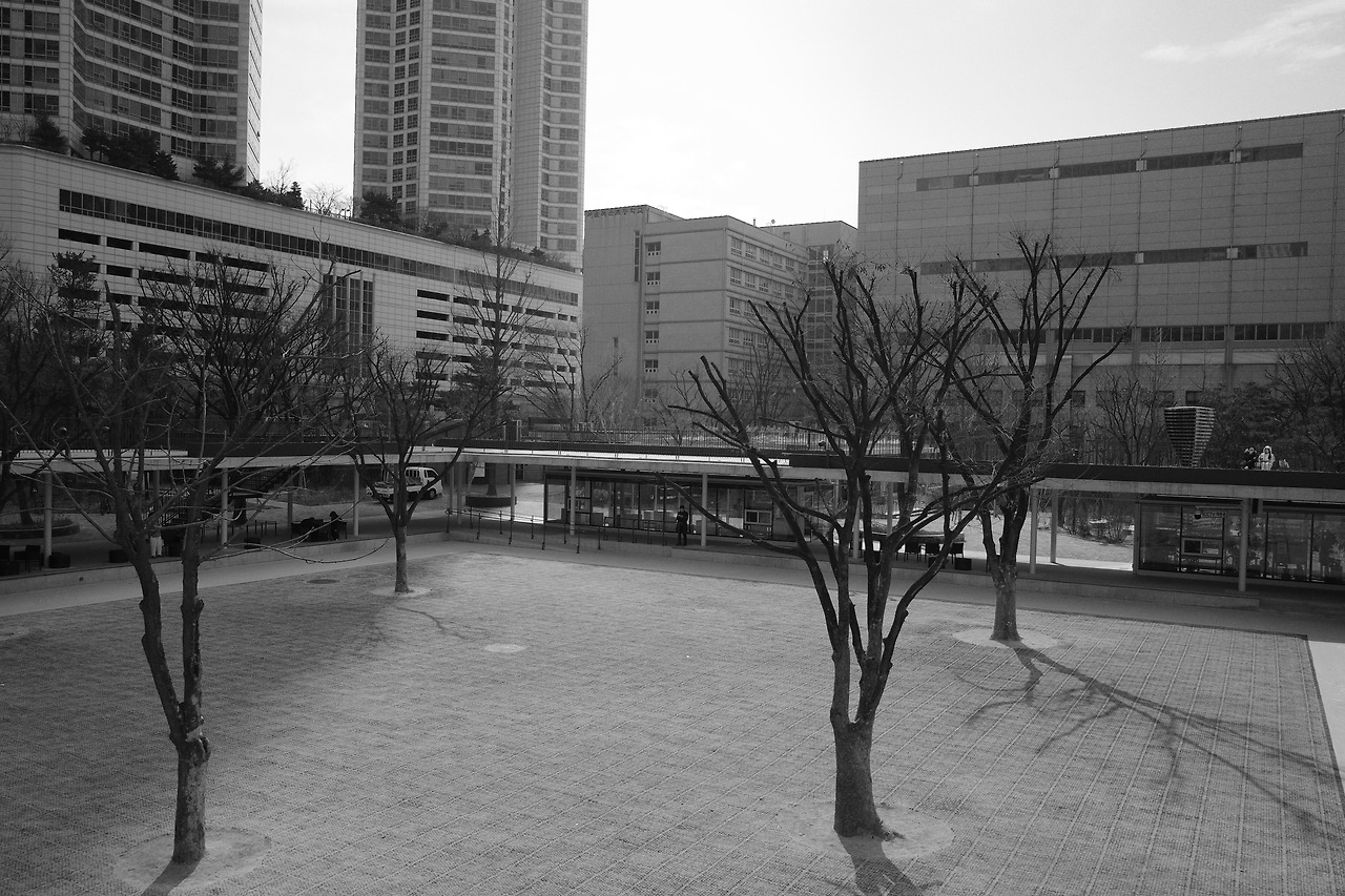 조경 리뉴얼에서 가장 중요한 밑작업은 이용자 입장에 서서, 켜켜이 쌓인 시공간의 XYZ 축을 차분하게 정리하고 정돈하는 일이다. 새로운 디자인은 이용자 연령 특성을 고려해서 기존 농구장과 운동기구공간을 멀찍이 떨어뜨려놓았다. 사진작가들이 포착하고 싶어 할 법한, 회랑덮개 위를 뚫고 나올 느티나무 실루엣의 유혹을 선택하기보다는, 사람과 느티나무의 지속적인 상생을 위해 잔디밭 안쪽으로 위치만 조정해서 무난한 모습을 선택했다.