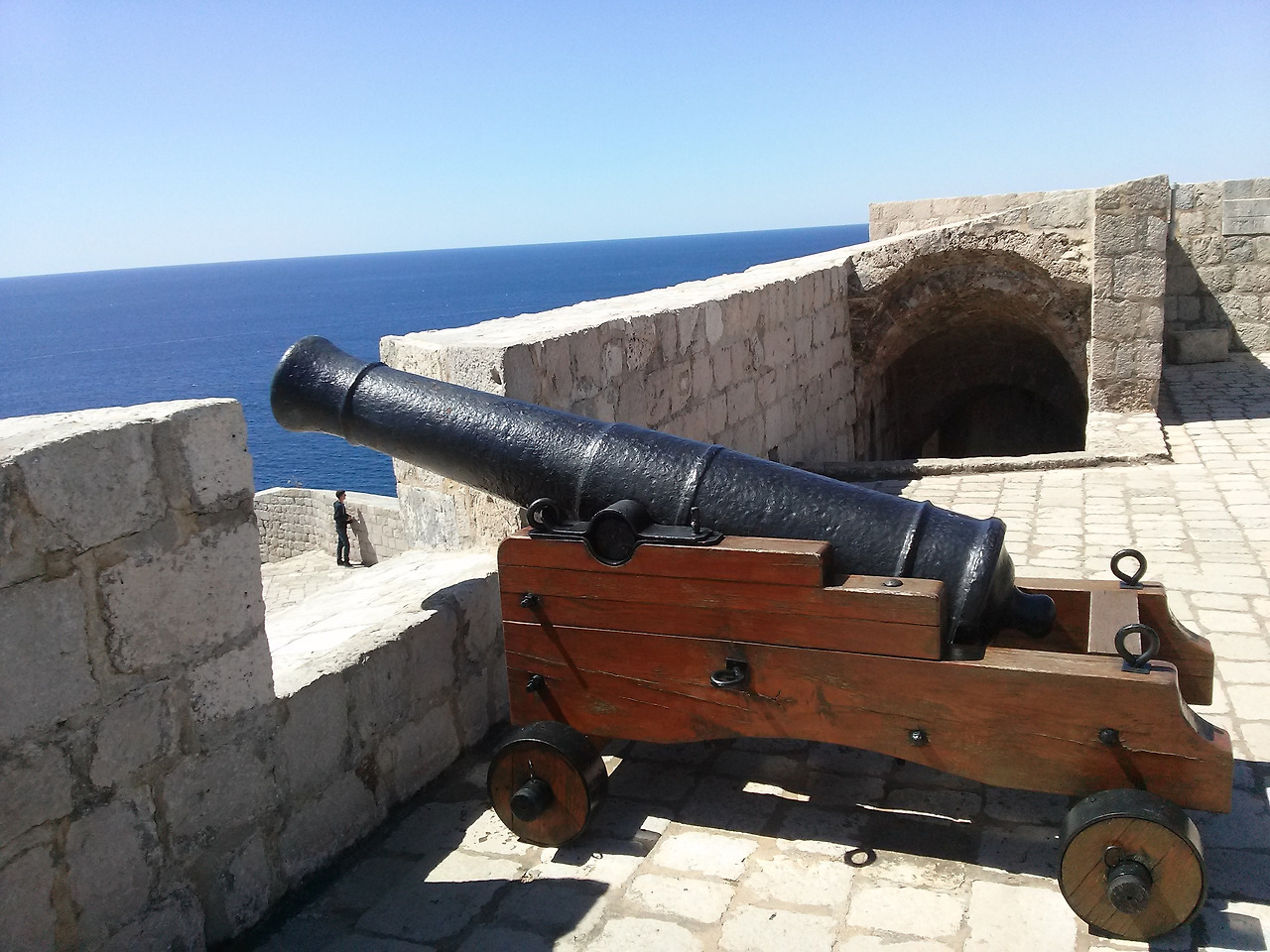 바다를 향한 요새의 대포어제 비 맞으며 걸었던 구시가지 성벽과 그 위를 걷는 사람들의 모습이 이곳 요새에서 건너다 보인다.