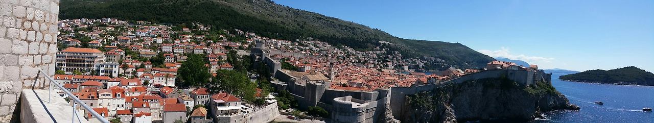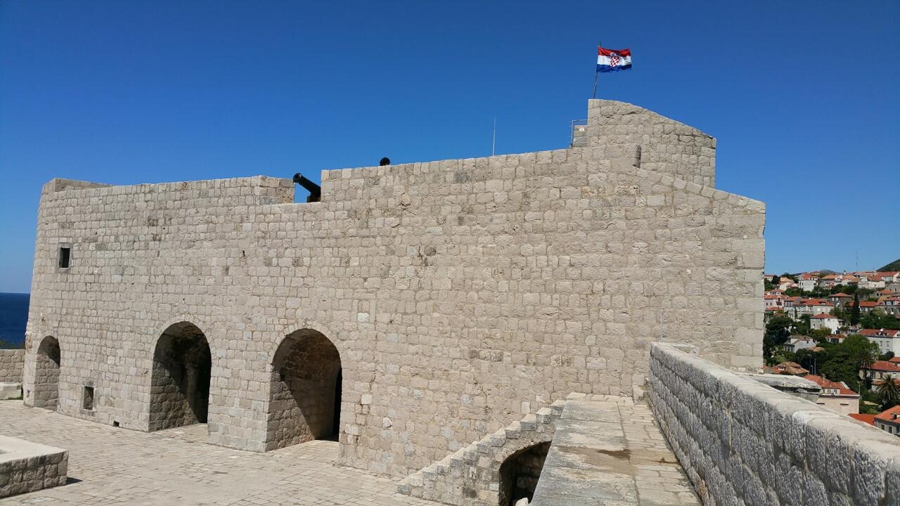 두브로브니크의 성벽은 13세기에서 16세기 사이에 건설되어 현재 부분적으로 보수 중임을 어제 보았지만 원상은 남아있는 것이라고 한다. 길이는 1940m, 높이는 최고 25m에 가장 두꺼운 곳의 벽은 6m이며, 성벽 중간 중간에 6개의 요새가 자리한다.