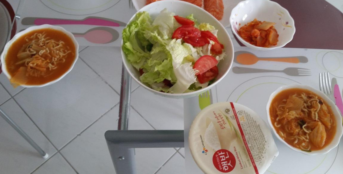 아껴서 여정 마지막 만찬 메뉴 된 즉석밥과 라면 그리고 돼지고기 감자찌개
