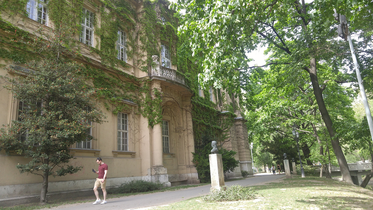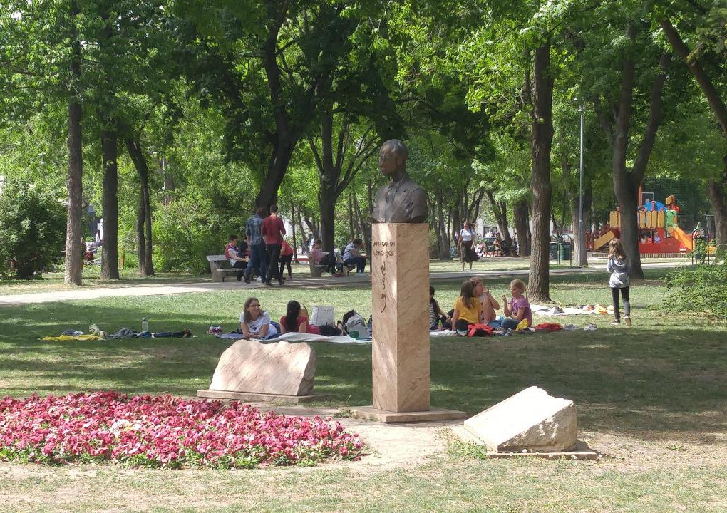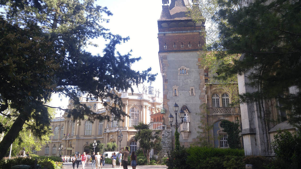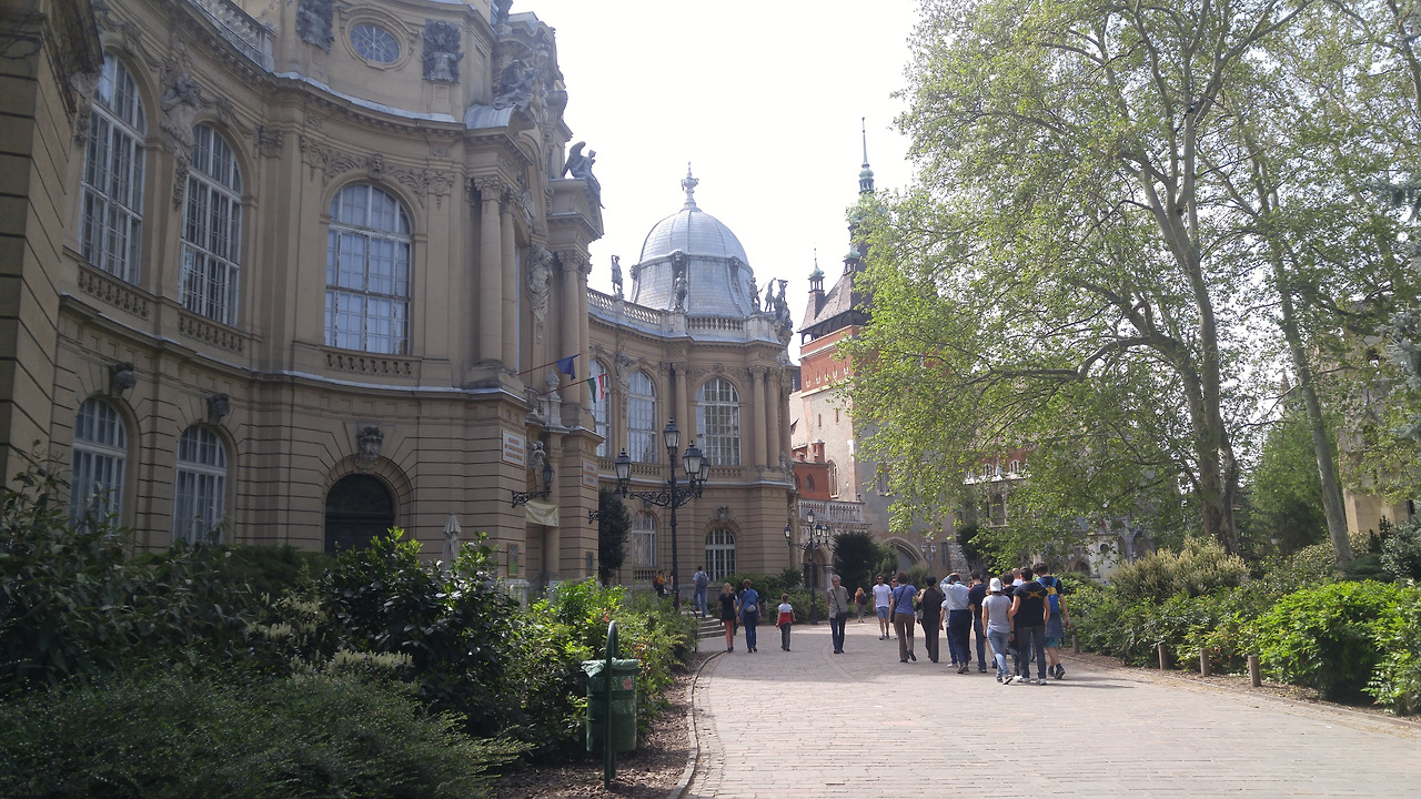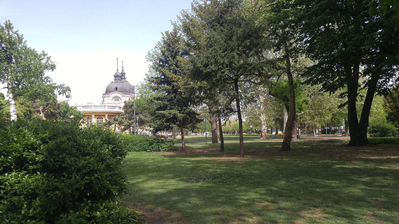 광장 뒤편으로 시립공원, 동물원, 세체니 온천, 농업박물관 등이 있다. 공원 여기저기에 쉬고 있는 사람들이 많다.